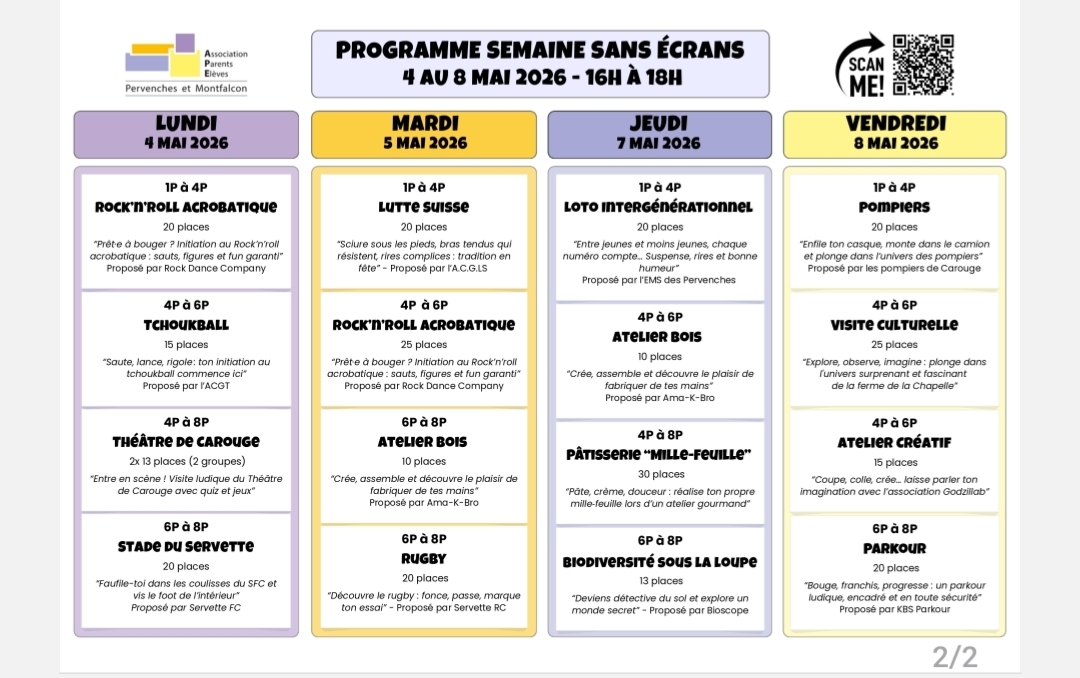 le programme de la semaine sans écrans 2026 est là!!!!
